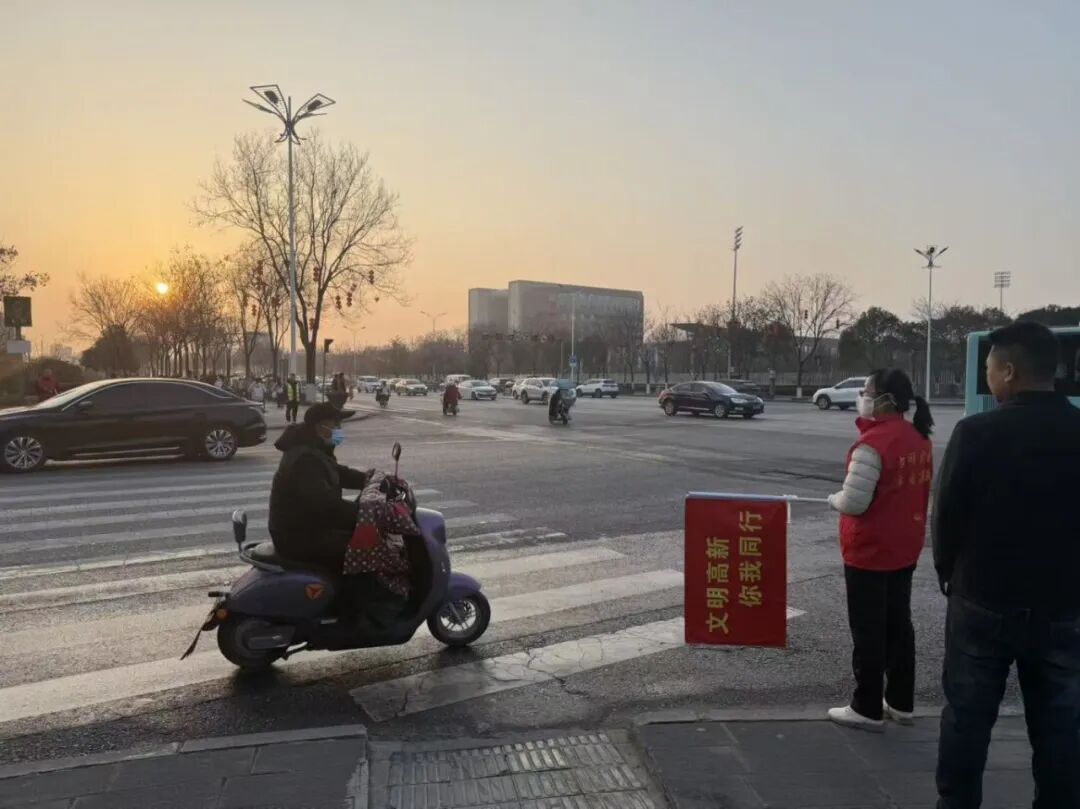 3月8日,文明交通引导小分队值守园区重点路口,劝导不文明交通行为、提供路线指引,守护出行安全,传递文明新风。